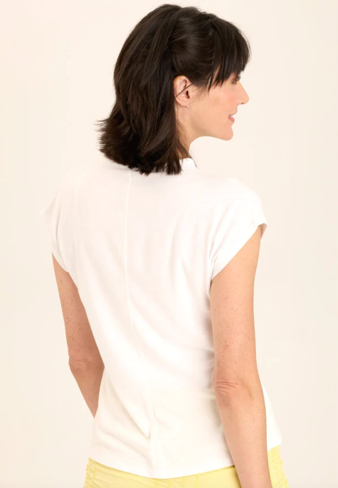 Two pleats adorn the shoudlers of this mock neck classic silhouette. In our breezy slub jersey, comfort and style are hand in hand with this stunner. This top has been preshrunk for the best fit and is machine washable.