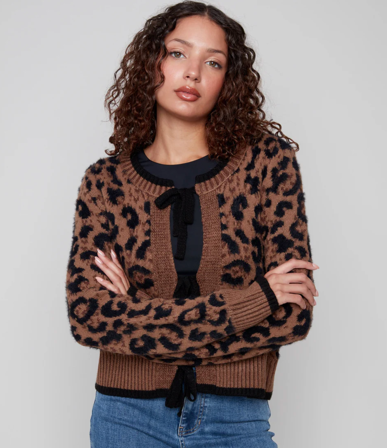 Charlie B's Bow Tie Animal Print Cardigan, where plush comfort meets striking style. The vivid leopard print and playful bow tie closure make an instant statement, ensuring all eyes are on you. Designed for all-day wear, it blends elegance with ease—your must-have standout piece for fall. Super cute over a Tee or a Collared Shirt.